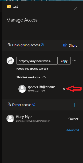 - You will get this popup and you can confirm that you want to remove access to the listed email address for the person