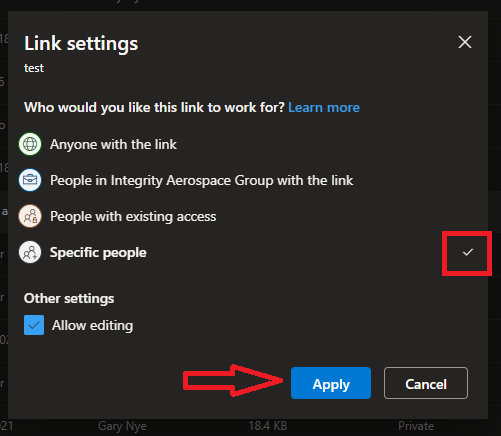 - Once the person has successfully gained access to the folder/file you will receive a confirmation email