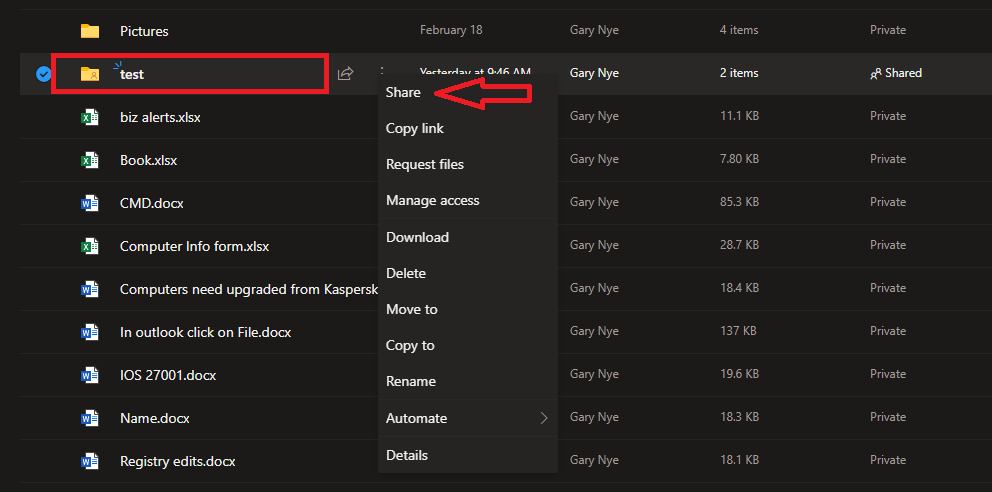 - highlight the folder or file you want to share, Click on the 3 dots and select share
